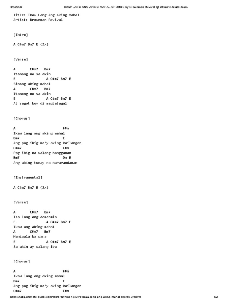 Ikaw Lang Ang Aking Mahal Chords By Brownman Revival Pdf