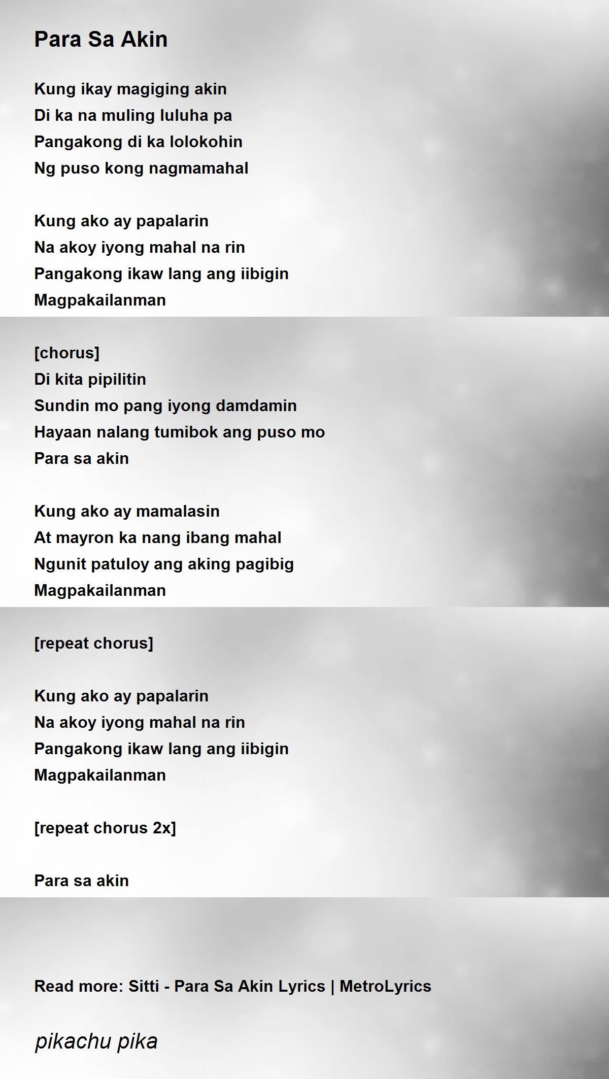 Para Sa Akin By Pikachu Pika Para Sa Akin Poem